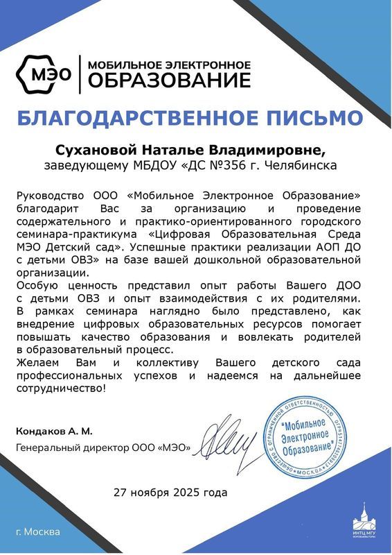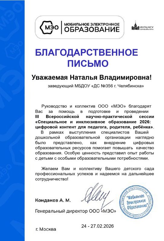 совместно с Региональным представительством МЭО в Челябинской области проводит II Всероссийский фестиваль цифровых практик в дошкольном образовании «Мама, папа, педагог и я с МЭО лучшие друзья!»